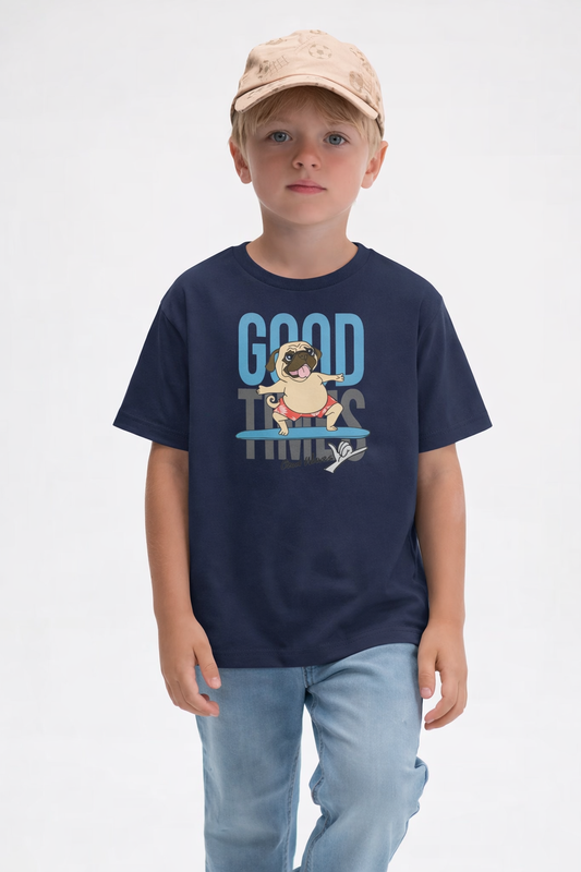 Jobka Kids Erkek %100 Pamuk Good Vibes Baskılı Lacivert Renk Tshirt