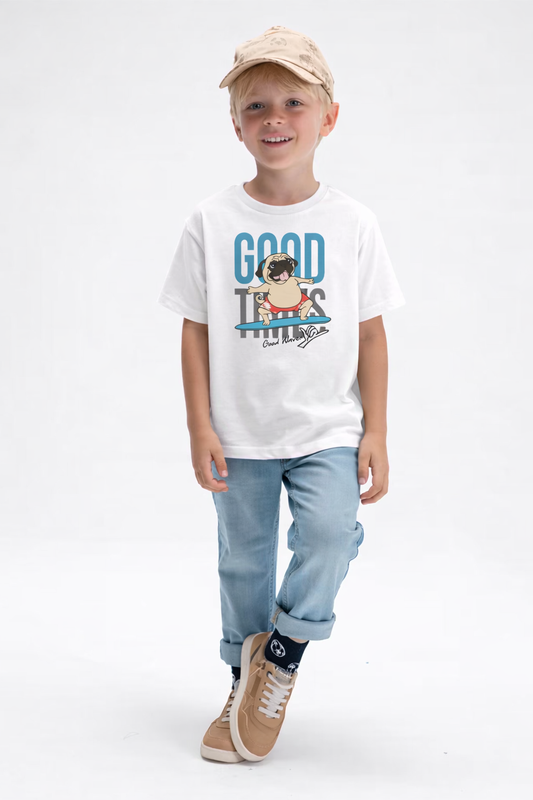 Jobka Kids Erkek %100 Pamuk Good Vibes Baskılı Beyaz Renk Tshirt
