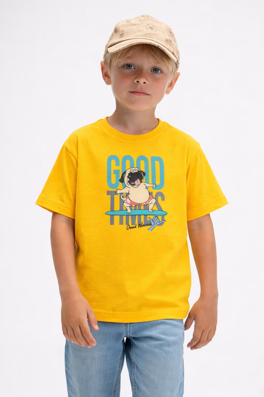 Jobka Kids Erkek %100 Pamuk Good Vibes Baskılı Sarı Renk Tshirt