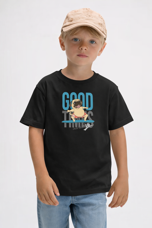Jobka Kids Erkek %100 Pamuk Good Vibes Baskılı Siyah Renk Tshirt