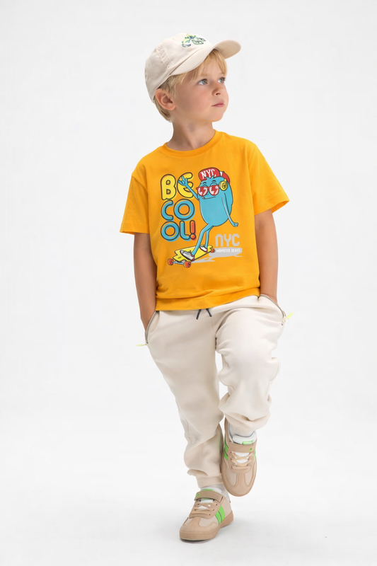 Jobka Kids Erkek %100 Pamuk Be Cool Mikrop Baskılı Sarı Renk Tshirt