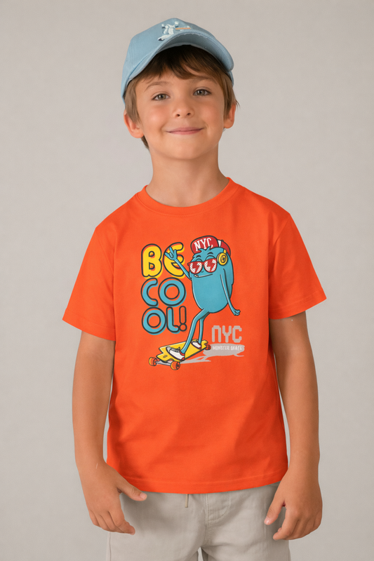 Jobka Kids Erkek %100 Pamuk Be Cool Mikrop Baskılı Turuncu Renk Tshirt