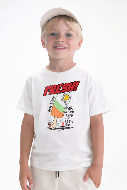 Jobka Kids Erkek %100 Pamuk Fresh Dondurma Baskılı Beyaz Renk Tshirt