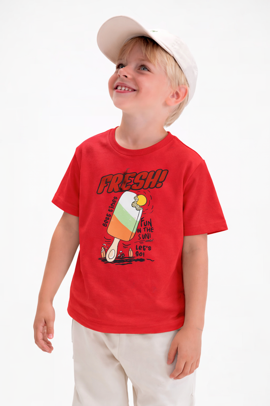 Jobka Kids Erkek %100 Pamuk Fresh Dondurma Baskılı Kırmızı Renk Tshirt