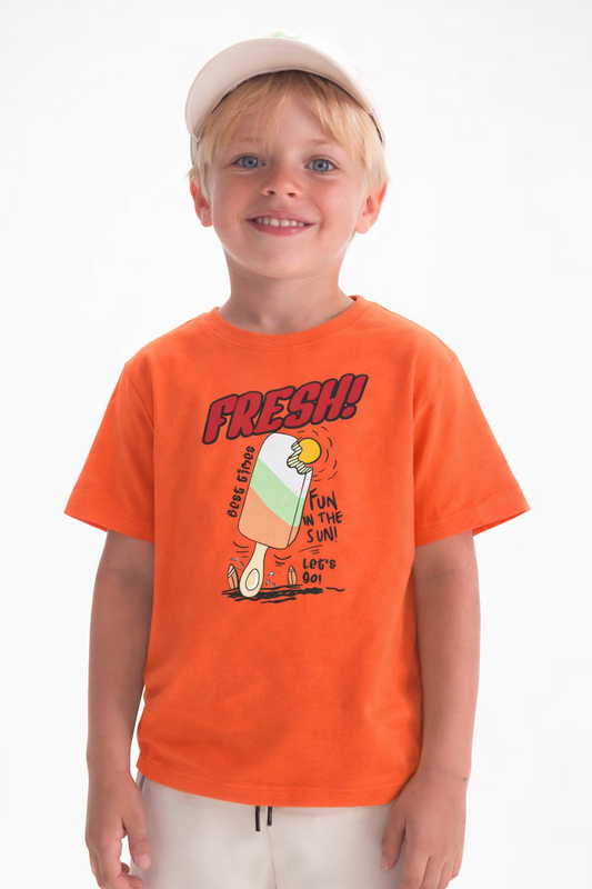 Jobka Kids Erkek %100 Pamuk Fresh Dondurma Baskılı Turuncu Renk Tshirt