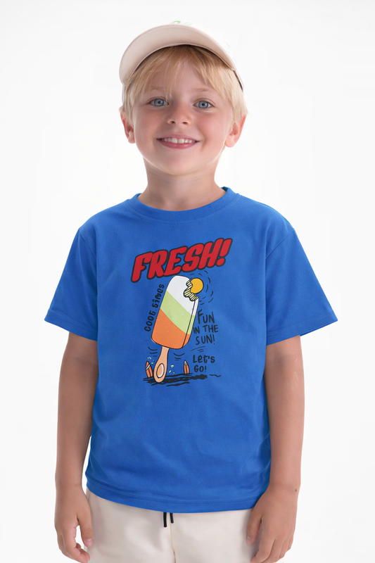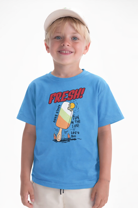 Jobka Kids Erkek %100 Pamuk Fresh Dondurma Baskılı Gök Mavisi Renk Tshirt