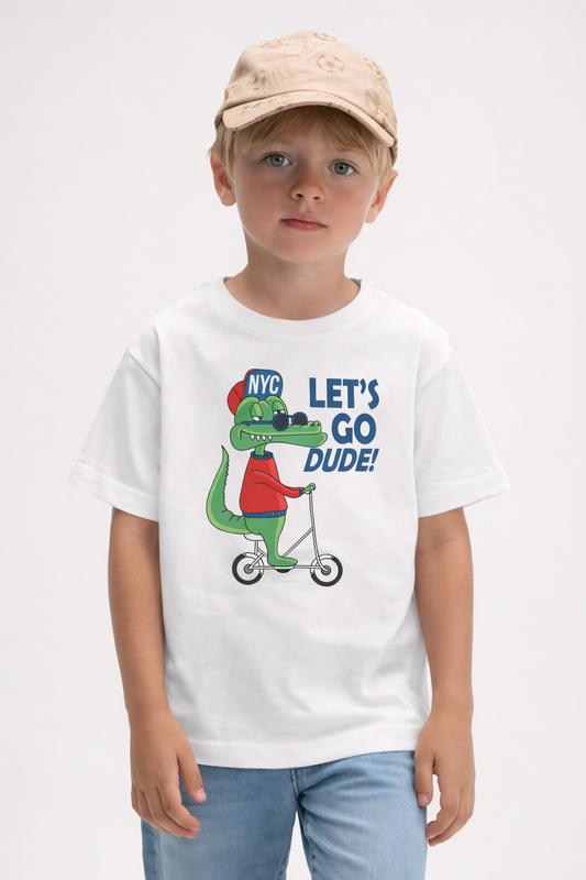 Jobka Kids Erkek %100 Pamuk Dinazor Baskılı Beyaz Renk Tshirt