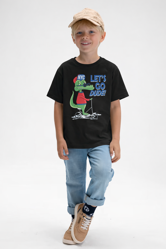 Jobka Kids Erkek %100 Pamuk Dinazor Baskılı Siyah Renk Tshirt