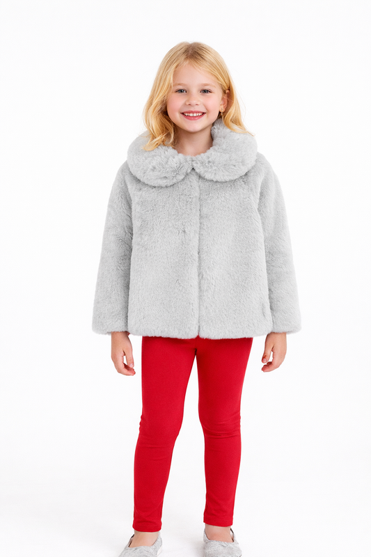 Jobka Kids Kız Suni Peluş Gri Renk Kürk Kaban