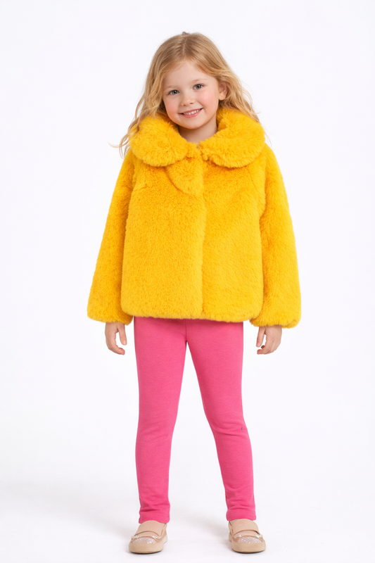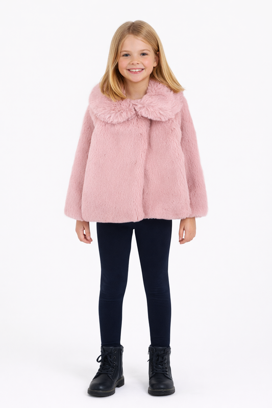 Jobka Kids Kız Suni Peluş Pembe Renk Kürk Kaban