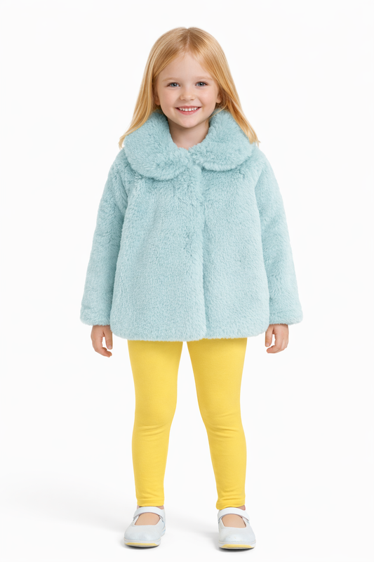 Jobka Kids Kız Suni Peluş Mint Yeşili Renk Kürk Kaban