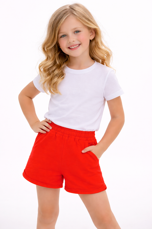 Jobka Kids Kız %100 Pamuk Nar Çiçeği Şort