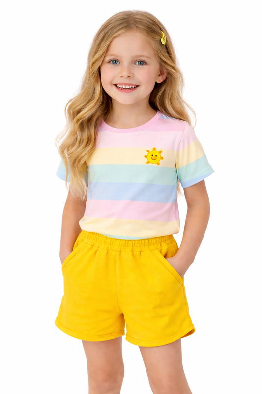 Jobka Kids Kız %100 Pamuk Sarı Şort