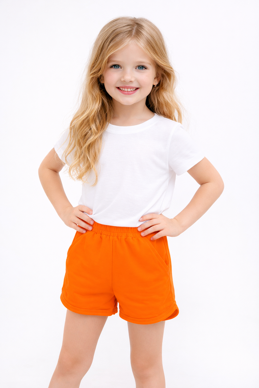 Jobka Kids Kız %100 Pamuk Turuncu Şort